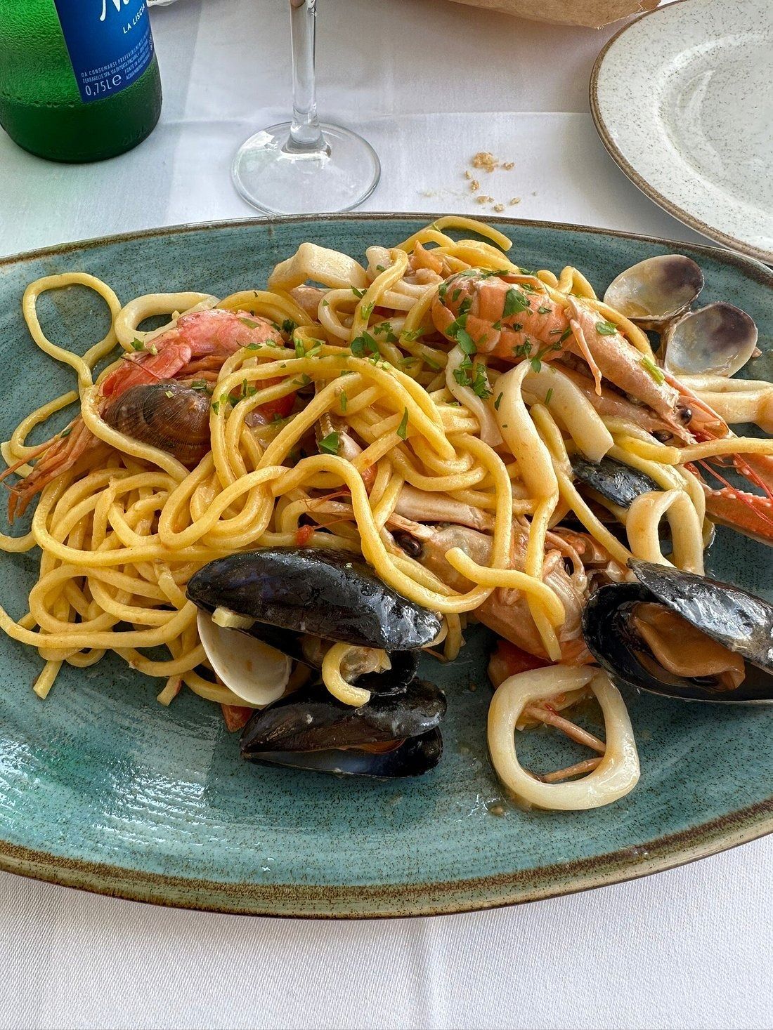 Accanto alle proposte di mare, il menù include anche piatti di carne e ricette della cucina tipica romana, permettendo agli ospiti di scegliere tra diverse alternative in base alle proprie preferenze gastronomiche.